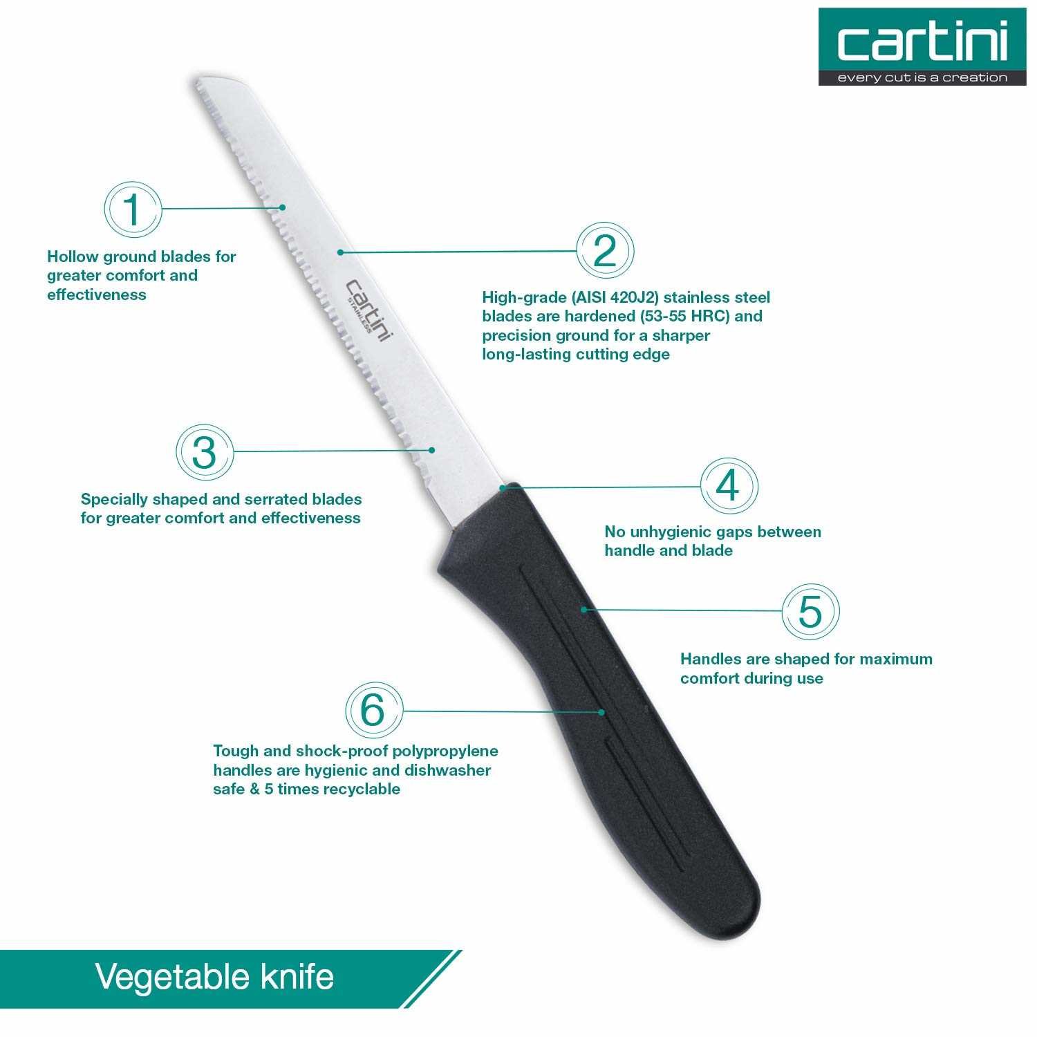 For carving vegetables / fruits; ideal for salad decoration These knives are designed using high-quality blades that are made from food-grade hardened and rust-resistant stainless steel which ensures long edge retention. Featuring an ergonomically designed molded handle for a comfortable grip, the knives lead to stress-free cutting. Furthermore, the smart design of these knives makes them a great addition to your home kitchen, restaurants, and dining space.