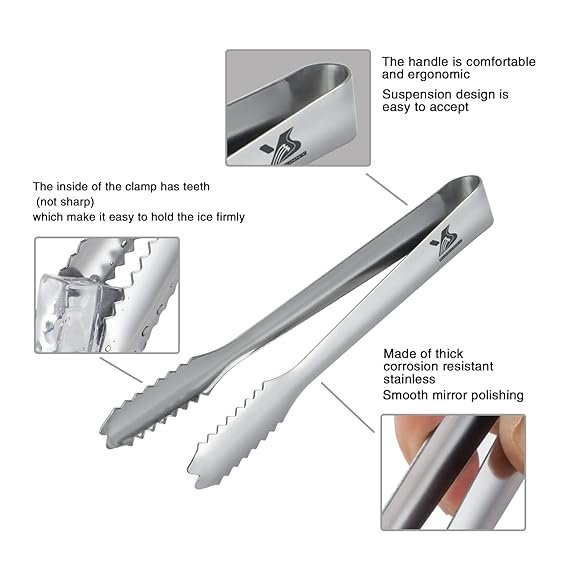 - 【Multi-purpose】7 Inch ice tongs are great for grasping ice cube, sugar cube, lemon slice, jelly, cookie, etc. And they are a perfect tool for making coffee, breakfast, cooking.